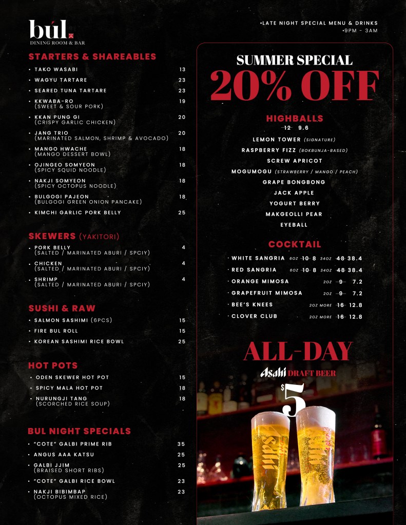 As night falls, Bul reveals its depth — smoky, intimate, and quietly bold.