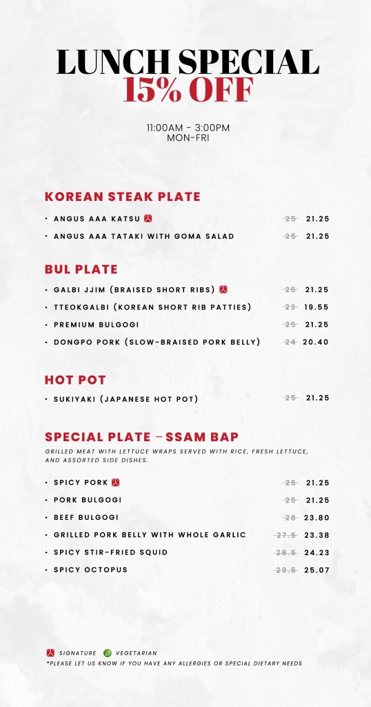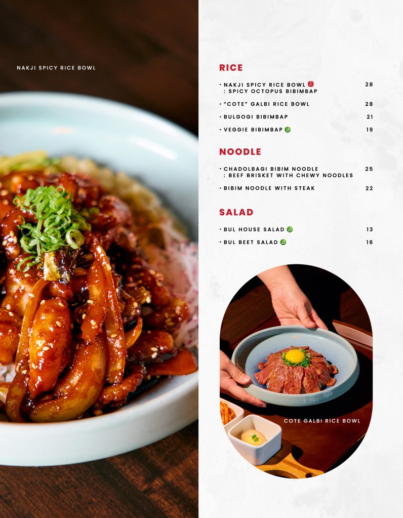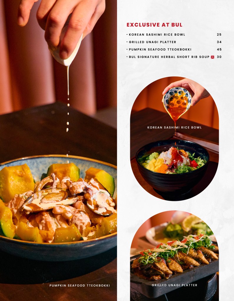 “Korean flavours, refined by fire.”“Every dish tells a story — bold, deep, and distinctly Bul.”